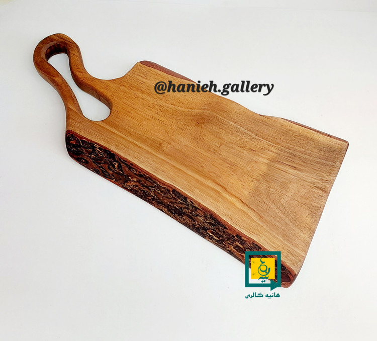 خرید آنلاین تخته سرو چوبی 43*20 دسته کج جنس درخت خرمالو با ارسال فوری قابل سفارش به صورت تک و عمده ، مقاوم دربرابرضربه وشکستگی واستفاده ازچوبهای یک تکه وآبگریزشده توسط روغنهای مخصوص،